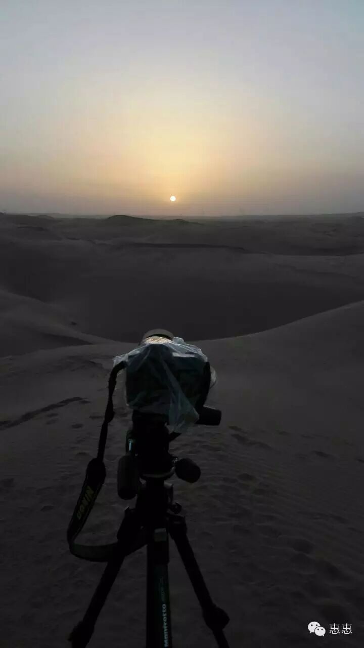 在暖宝宝的余温中,在窸窣的说话声中,我哆哆嗦嗦的从睡袋中钻出脑袋,一阵凉意从后脑勺直逼脊椎骨。我没有像往常一样赖床十多分钟再起来,而是迅速整理好睡袋,钻出帐篷,为的是天天可见,却从未认真对待的日出。沙丘上,已经站着若干驴友,我赶紧蹬上两百多块钱买的登山鞋屁颠屁颠的朝着他们跑去。还记得刚买回它们的时候,我觉得它俩真是又丑又笨重,走起路来,小腿一会就酸痛起来,而相处数以公里,却觉得越看越顺眼,它们既温暖又结实,还给平凡的我增添了几分帅气。起初的格格不入已转化为一种相见恨晚,但总归找到对方的喜悦。我大口大口的呼吸着清晨的空气,清新至极,让人顿感怡然自得,和某都的空气比起来,真是。。。算了,不吐槽了。 0 o8 d+ S* V- [. U$ ^