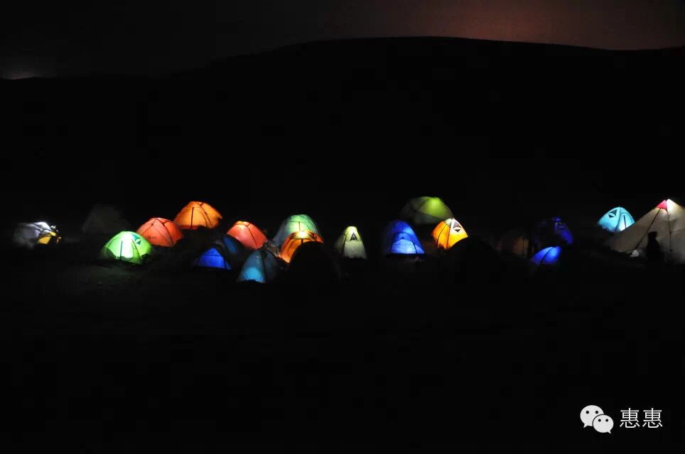 狂欢落幕之后,是漫长的夜。那天夜里气温是零下8度,我睡在800克的睡袋里,耳边是呼啸而过的风。起初,我很担心,如何在这样的寒冷中入眠,心里也开始胡思乱想起某个人,某双温暖的手,某个结实的臂弯,就这么想着想着,在暖宝宝发挥起作用后,我甜甜的睡去了。