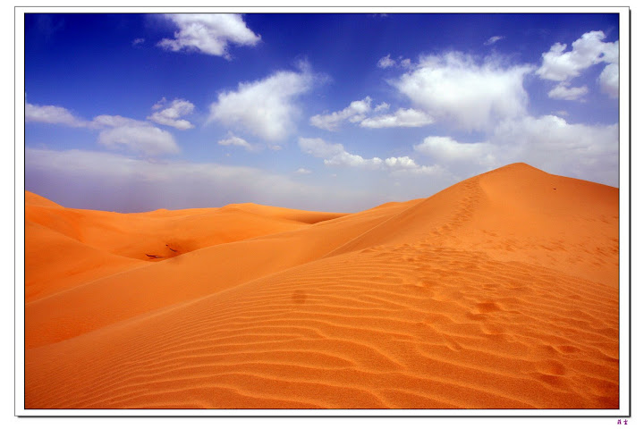 那天的天气是相当的好,越走越晴,蓝天显现白云不断。在沙漠中徒步能够遇到这样不冷不热地好天气实在是中福分。我就是沐浴在这种福分中沾沾自喜。其实,我感觉在沙漠中徒步的强度并不大,因为没有很强的上升,不会造成太大的体力不支。除了爬沙丘就如原地蹬自行车一样让人不爽外,就是沙漠中的风沙真是无处不在。相机真是舍不得拿出来。所以进入沙漠前很多人给相机作了面膜也是非常明智的做法。