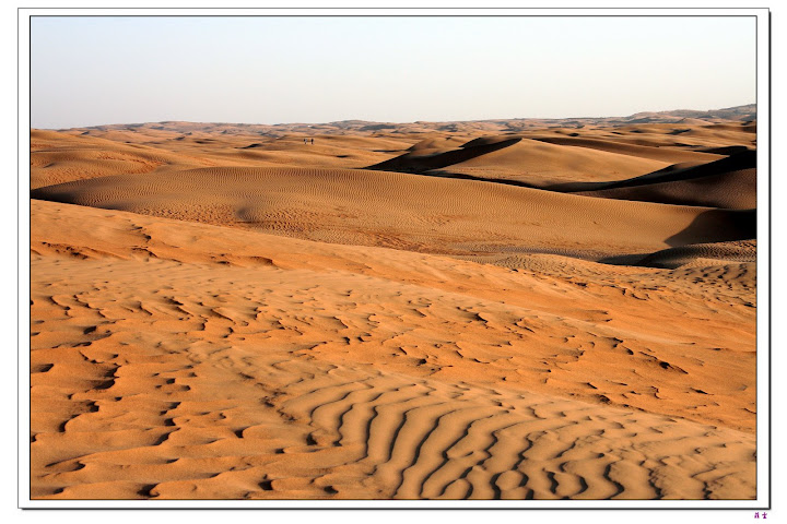 初入大漠,踩在松软的细沙中,脚感不错。有些在雪地里行走的感觉,甚至我一度在边走边欣赏那嚓嚓的声音。但越着深入沙漠复地,就会觉得那声音及其单调,甚至会让人生厌。